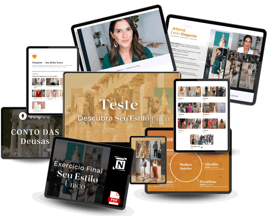 Esta não é mais uma ferramenta genérica de moda. Este é um método baseado nos arquétipos das deusas gregas, para que você descubra não só seu estilo, mas a roupa que conecta sua personalidade ao seu posicionamento profissional.